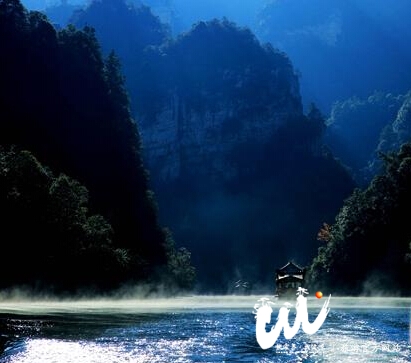 張家界寶峰湖:船在畫中游 妙手繪丹青(圖)2015/12/09藍(lán)天下的張家界寶峰湖風(fēng)景區(qū),薄霧在湖面飄繞,船行其中,宛如一幅水墨丹青畫卷 。