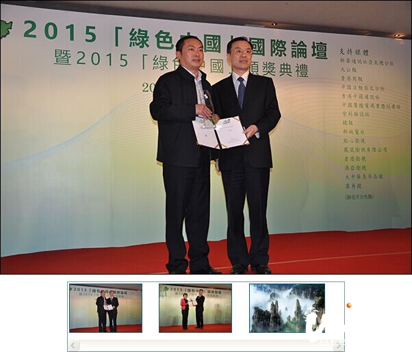 張家界武陵源區(qū)榮獲「2015綠色中國(guó)城市獎(jiǎng)」2015/12/182015綠色中國(guó)國(guó)際論壇暨綠色中國(guó)環(huán)保成就獎(jiǎng)?lì)C獎(jiǎng)典禮于12月上旬在香港隆重舉行,湖南三單位因其在綠色環(huán)保領(lǐng)域取得的成就獲主辦方肯定,在香江刮起一股綠色旋風(fēng)。