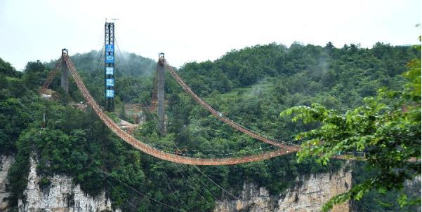 張家界大峽谷玻璃橋進(jìn)入主纜施工階段2015/07/16張家界大峽谷玻璃橋進(jìn)入主纜施工階段