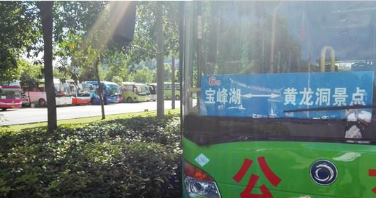 張家界黃龍洞至寶峰湖景點(diǎn)開通公交車2015/08/108月10日上午,幾名自助游客高興地在張家界市武陵源區(qū)黃龍洞停車場入口處登上6路公交車,前往寶峰湖景區(qū)參觀。