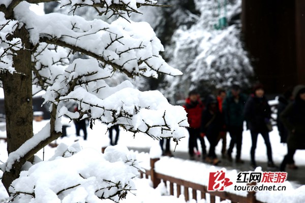 寶峰湖景區(qū)降下大雪。