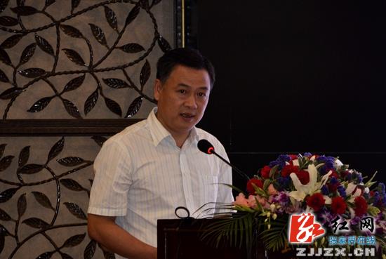 武陵源區(qū)委書記朱用文介紹“世界之界”2015全國(guó)高鐵站張家界風(fēng)光攝影巡展活動(dòng)
