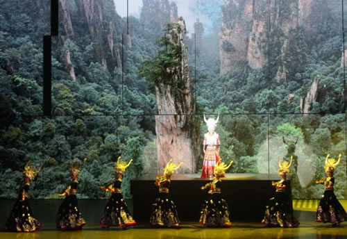 采用多媒體互動(dòng)表演的旅游演出:真人與視頻的完美結(jié)合,演員在屏幕間來回穿梭,產(chǎn)生亦真亦幻的影像錯(cuò)覺。