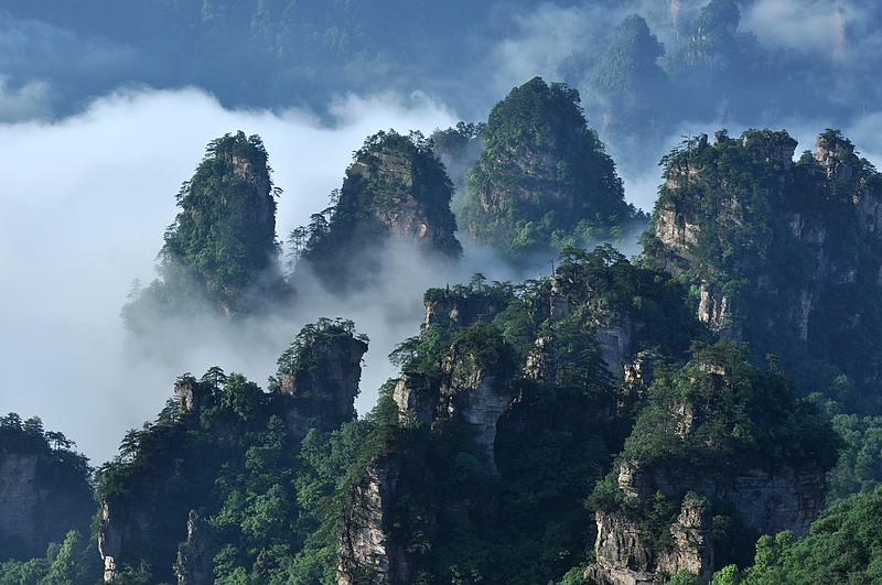 西海白云向稱絕景,尤宜登天臺觀賞。這一帶還有數(shù)以千計的石峰。步入西海,宛若置身于石林海洋之中。主要景點有猴園、南天門、天臺、臥龍嶺、無字碑和寶塔峰等10余處。