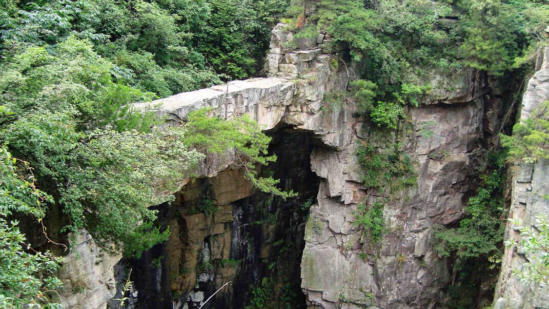 張家界仙人橋,又名自生橋,是一個位于張家界茶盤塌游覽線右側(cè)1公里處的經(jīng)典,在天子座石臺上觀此景最佳。橋身為石英砂巖,橋下為深淵,凌空飛架東西兩峰,“天塹變通途”。鬼斧神工,嘆為觀止。