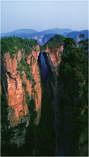 Three hundred and eighty million years ago, the Wulingyuan area is an ancient sea. Zengjingcanghai hard water, through the time tunnel of hundreds of millions of years, nature Weili has this piece of ancient submarine carved into a single huge natural flowers. The edge of a canyon is a piece of petals; a root is the root of a flower is the pinnacle, embrace the petals. This flower is in full bloom in the ebb and flow of clouds and closed, half open posture is the most charming. The spring torrents and FEISA above the gorge, the cliff, is the sweet nectar. This is the most beautiful and the most beautiful flowers in the world.
