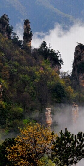 Wulingyuan spring and autumn and winter, the four seasons; only when, majestic and grand. The weather changes often make the mysterious peaks. Clear blue skies, blue sky peaks Qi refers to, quiet and harmonious, leisurely and free. Rain comes, is misty peaks, stand proudly. The rain clouds will air early Ji, manjuan peaks, flickering, near and far, real and illusive. Due to the uneven peaks, different altitudes, different plant distribution, often have "ten different days" of the landscape.