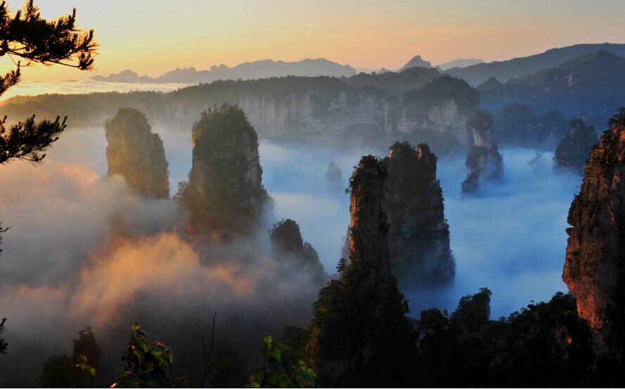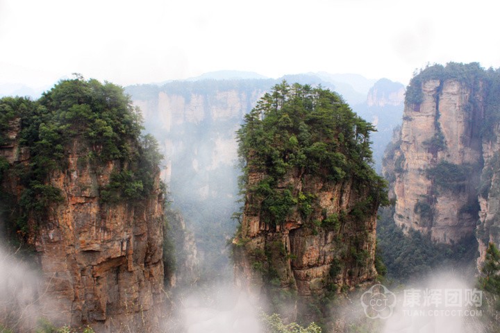 Zhangjiajie national Forest Park area of 130 square kilometers, is China's first national Forest Park. In the peak forest evolution history in the period of youth, strange landscape, Shifeng the proliferation, shapes, lush trees; surrounded by the mountains surrounding, steep slopes and deep gullies, warm and humid climate, the many attractions. There are two above 1000 meters thick and flat top and steep slope of the hill, said a Huangshi village, a village, a kite. From the point of view of geomorphology, Fangshan peaks in the history of evolution is still in the period of youth. Because the rock is wide, soft rock and hard, surrounding hillsides are composed of vertical joints of cliffs, gradually formed a high into the Yunxiao, top open flat, imposing and magnificent fortress, in order to give people a sense of sublime walled fortress flat. Zhangjiajie National Forest Park can be divided into the Huangshi Zhai, Pipa brook, Golden Whip Stream, Yaozi village, she trench knife, Yuan Jiajie, six small area.
