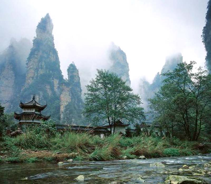 “水隨山轉(zhuǎn),山因水活”、“溪水因山成曲折,山溪隨地作低平”。金鞭溪的水流到這里,此處地勢(shì)平坦,積沙成州,傳說(shuō)是“向王天子”的出生地,故古代又名“天子州”。站在天子州向前眺望,遠(yuǎn)處石峰上那“簽筒筆架萬(wàn)歲牌”的七個(gè)大字,還依稀可辨,傳說(shuō)它是當(dāng)年向王天子坐朝受拜的地方。在這里,還可以看到古人模樣的“四十八大將軍”中的好幾個(gè)。從這里向東北可去索溪峪;向西南可去張家界;向西可上天子山,是一處行旅方便之地。如今,這里以修建了旅游新村,專供游人住宿休息,為了撫平一天的勞頓,更好的養(yǎng)精蓄銳,探索未知的風(fēng)光名勝。