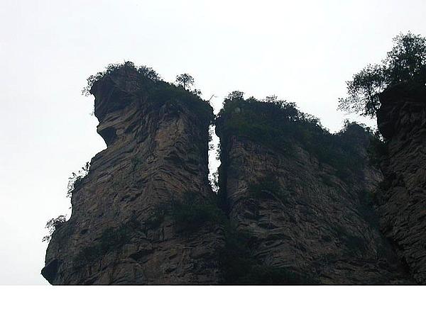 前方一座山峰,底部連成一體,頂部分成兩半,好像被什么東西劈開(kāi)一樣,巧合的是,旁邊還有一座小山峰,很像一把巨大的斧頭,人稱此景為“劈山救母”,傳說(shuō)是沉香救母時(shí),以為這便是華山,劈到一半時(shí),有人告訴他,這不是華山。從地質(zhì)學(xué)的角度來(lái)看,主要是由于硬軟相間的巖層經(jīng)過(guò)重力崩塌和流水切割作用形成的,是大自然的鬼斧所劈。
